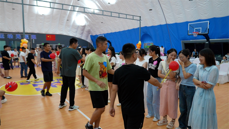 整場聯(lián)誼活動氣氛輕松愉快,“一錘定姻”“紙短情長”“心靈感應”“怦然心動”“愛之表白”等互動游戲不斷拉近青年男女之間的距離。大家默契配合、發(fā)揮才智,在歡快激烈的團隊活動中消除隔閡、增進友誼。“愛之表白”環(huán)節(jié),青年職工們?yōu)樾腋4竽懓l(fā)聲,勇敢地向心儀的對象表達了繼續(xù)深入交往的意向;顒幼詈,宜城王婆現(xiàn)場說媒,鼓勵現(xiàn)場青年向心儀的嘉賓送上氣球,表達愛意,并共同懸掛許愿牌。