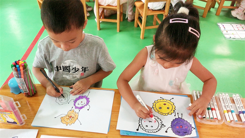 中秋節(jié)有許多文化的符號:玉兔、嫦娥、圓月和燈籠……在濃濃的節(jié)日氛圍中,實驗幼兒園的孩子們也用自己的小巧手為溫馨美滿的中秋節(jié)裝扮上了自己獨特的一抹色彩。小小藝術家們以筆墨追隨中秋,將滿月、桂花、秋水、月餅等中秋元素融入畫中,創(chuàng)作出一幅幅既有傳統(tǒng)韻味又不失新意的藝術作品,令人賞心悅目。