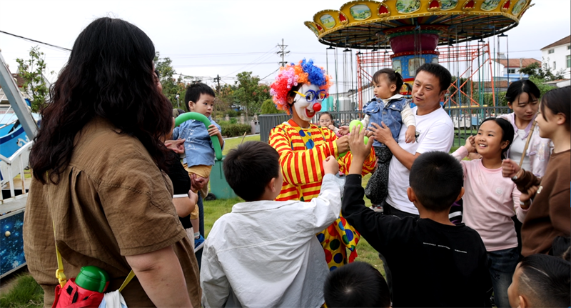 “快點(diǎn),小丑在送禮物!”10月1日,龍?zhí)缎℃?zhèn)親子樂園人頭攢動(dòng),和小丑玩游戲贏禮物,讓孩子們激動(dòng)不已。