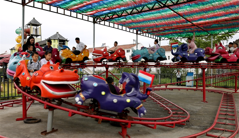 和家人一起來玩的小朋友曾梓欣興奮地說:“今天在這玩得很開心,這有很多項(xiàng)目,旋轉(zhuǎn)滑梯、碰碰車、叢林穿越很刺激,風(fēng)車也很漂亮。”