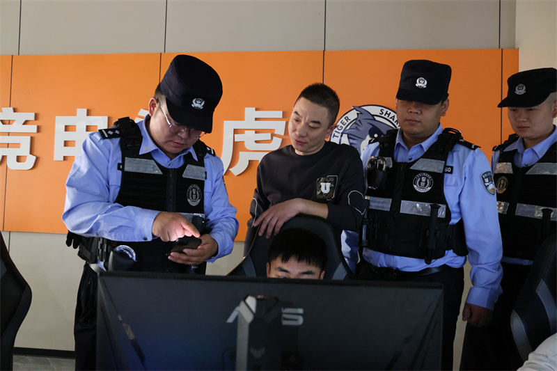 10月5日,記者在宜城市襄大商業(yè)廣場看見,宜城市公安局鄢城派出所的民輔警們正開展巡邏工作,對網(wǎng)吧、臺球廳等娛樂場所進行嚴(yán)格檢查,為市民提供一個安全穩(wěn)定的環(huán)境。