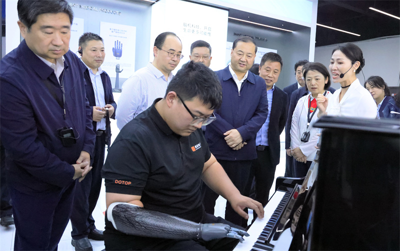 觀摩團(tuán)饒有興致地觀看仿生手演示
