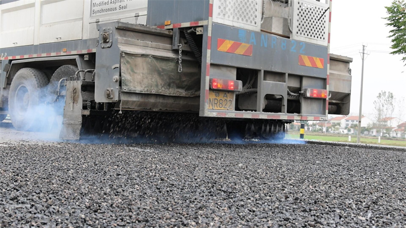 采用瀝青纖維碎石封層技術(shù)施工現(xiàn)場