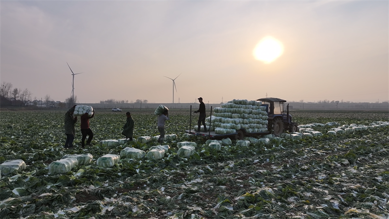 當前正是蔬菜豐收與銷售的旺季,在孔灣鎮(zhèn)江坡村一處蔬菜種植基地,蔡磊正帶領(lǐng)工人忙著采摘蔬菜、裝筐、上車,現(xiàn)場一片繁忙景象。
