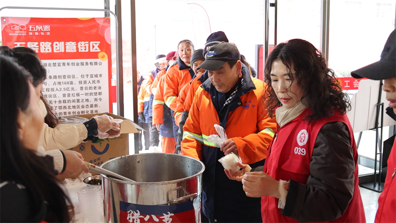 本網(wǎng)訊記者劉毅通訊員何家娥 魯麗報(bào)道:1月7日是農(nóng)歷臘月初八,俗話說(shuō):過(guò)了臘八就是年。當(dāng)天上午,宜城市總工會(huì)開(kāi)展了“臘八味 工會(huì)情”送溫暖活動(dòng),為環(huán)衛(wèi)工人、快遞小哥等戶外勞動(dòng)者送去臘八粥和節(jié)日的祝福。