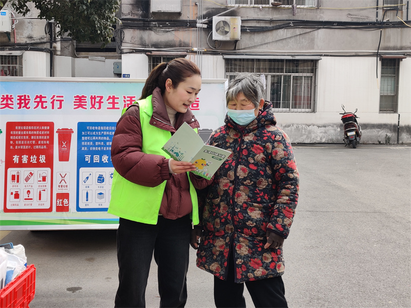 工作人員向居民講解垃圾分類知識