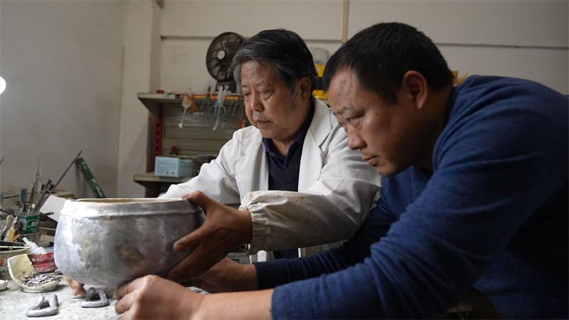 易澤林指導(dǎo)徒弟修復(fù)文物