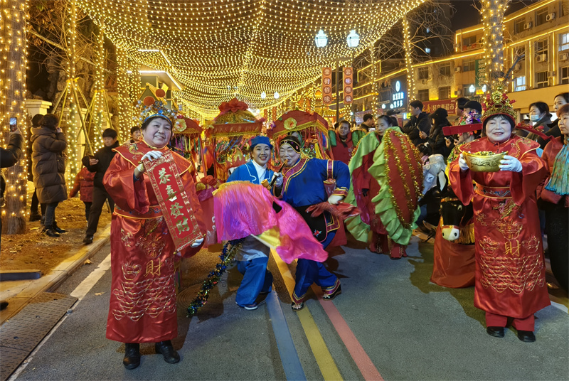 活動(dòng)現(xiàn)場人頭攢動(dòng),熱鬧非凡。伴隨著歡快的鑼鼓聲,民俗巡演隊(duì)伍盛裝出場。腰鼓舞鼓出了宜城人民昂揚(yáng)向上的精氣神兒;旱船、犟驢、蚌殼,演繹著古老的故事;“唐僧師徒四人”表演幽默詼諧,引得圍觀群眾捧腹大笑,F(xiàn)場觀眾紛紛駐足觀看,不時(shí)拿起手機(jī)、相機(jī)拍照留念,沉浸在這濃郁的民俗氛圍中。