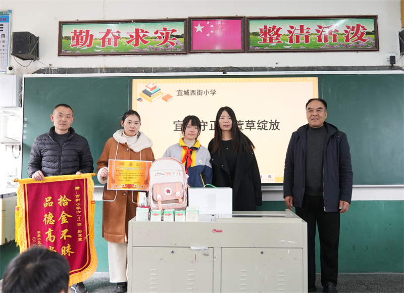 3月6日,彭宜萱同學(xué)在中午放學(xué)途中看見一位阿姨的手機(jī)不慎滑落,當(dāng)時阿姨正在走路,毫無察覺。她剛好目睹了這一幕,便毫不猶豫撿起手機(jī)歸還給了失主。值得一提的是,彭宜萱在歸還手機(jī)時并未留下自己的姓名,而是選擇默默離開。失主通過多方打聽才知道是西街小學(xué)的學(xué)生,最終在學(xué)校的幫助下找到了這位做好事不留名的同學(xué)叫彭宜萱。這一舉動不僅贏得了失主的深深感激,也贏得了全校師生的廣泛贊譽。