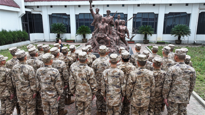在講解員的帶領(lǐng)下,預(yù)定新兵們參觀了烈士紀(jì)念館。一幅幅珍貴的照片、一件件飽經(jīng)滄桑的文物,生動(dòng)地再現(xiàn)了革命先烈們?yōu)槊褡濯?dú)立和人民解放而英勇戰(zhàn)斗的場景。新兵們認(rèn)真聆聽每一個(gè)感人至深的故事,深刻感受先烈們堅(jiān)定的信仰和無私奉獻(xiàn)的精神。