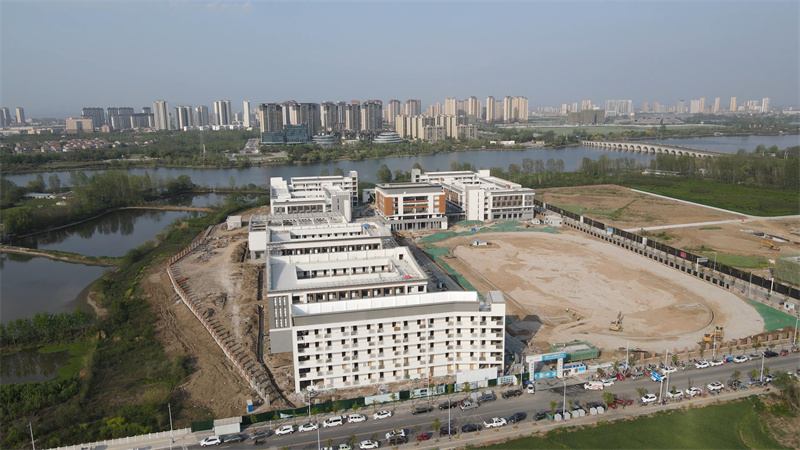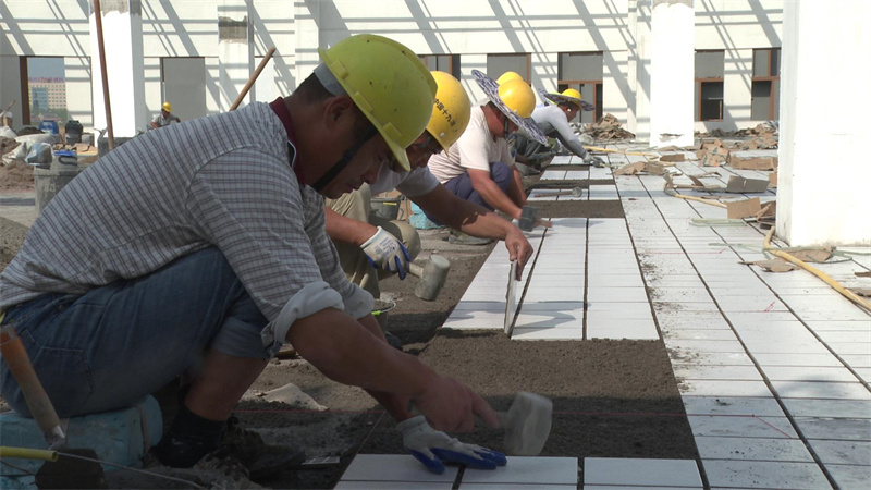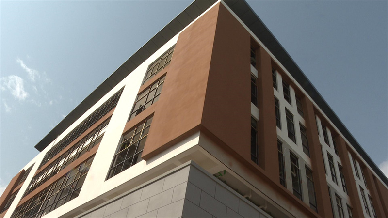 走進鯉魚湖中學項目工地,一棟棟學生宿舍樓、圖書館、教學樓被粉刷工人噴上環(huán)保真石漆,在陽光的照耀下熠熠生輝。