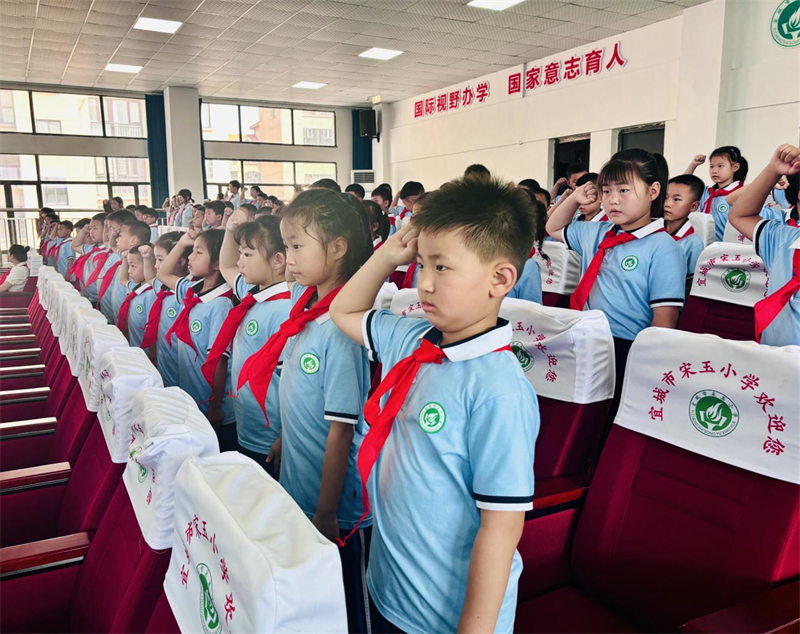 儀式上,宋玉小學(xué)負(fù)責(zé)人向新少先隊(duì)員表示祝賀,勉勵(lì)他們以紅領(lǐng)巾為榮,爭(zhēng)做“有理想、有擔(dān)當(dāng)”的好少先隊(duì)員。