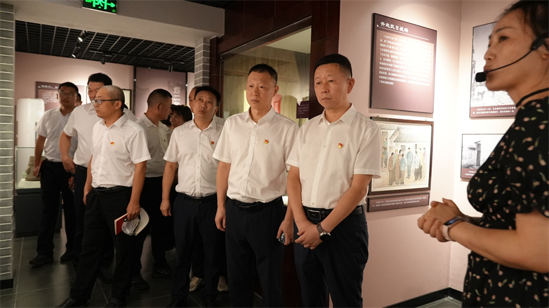 在王集鎮(zhèn)革命博物館,全體黨員干部齊唱國歌、重溫入黨誓詞。在講解員的帶領(lǐng)下參觀王全國同志生平事跡陳列館和王集地區(qū)革命史陳列館,通過一幕幕生動(dòng)的畫面、一篇篇重磅文件、一段段激昂文字,身臨其境感受以王全國同志為代表的革命先烈們的英勇斗爭(zhēng)和艱苦奮斗的精神。