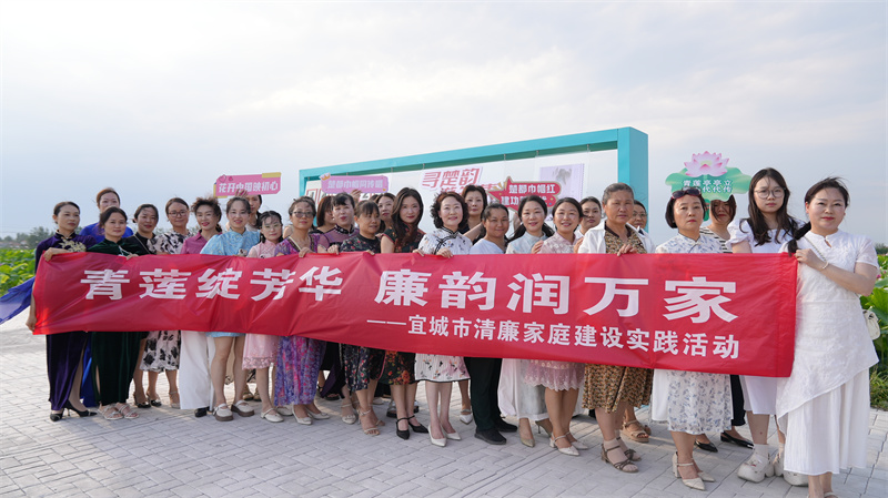 在荷花基地,層層荷葉間綴滿姿態(tài)各異的荷花,美不勝收。蓮花,出淤泥而不染。活動在宣讀《家庭助廉倡議書》中拉開序幕,呼吁大家以蓮花的高潔品質(zhì)為榜樣,積極投身清廉家庭建設(shè),用清廉守護家庭的幸福與安寧,為建設(shè)廉潔社會、共創(chuàng)美好未來貢獻巾幗力量。隨后大家齊唱《花開中國》,用飽滿的熱情、真摯的歌聲凝聚奮進力量,激勵現(xiàn)場更多女性游客在新時代綻放風采。