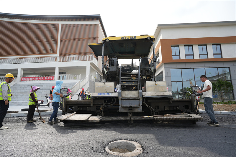 “目前正在施工的校園循環(huán)道路,從今天早上8點(diǎn)鐘開始進(jìn)行第一道鋪裝工作,預(yù)計晚上8點(diǎn)完成。明天上午8點(diǎn)將進(jìn)行第二道鋪裝工作!滨庺~湖中學(xué)建設(shè)項(xiàng)目部負(fù)責(zé)人郭慶柏說。