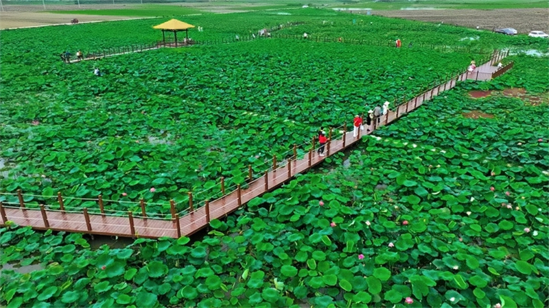 魏崗村采用“村支部+蓮藕合作社+農戶”的生產經營模式,充分挖掘小微水體的景觀價值、生態(tài)價值與經濟價值。產業(yè)園不僅為村民提供創(chuàng)業(yè)機會和就業(yè)崗位,還成為周邊青少年感受自然之美、體驗勞動之樂的社會實踐課堂。同時,荷花經濟還帶動鄭集鎮(zhèn)農家樂、餐飲等相關產業(yè)蓬勃發(fā)展,將生態(tài)“顏值”轉化為經濟“產值”,以旅游“流量”刺激消費“增量”,讓村民共享小微水體治理帶來的生態(tài)紅利。