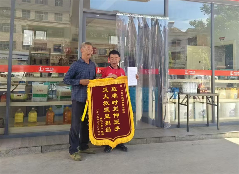 居民李健向中石化宜城板橋加油站贈(zèng)送錦旗