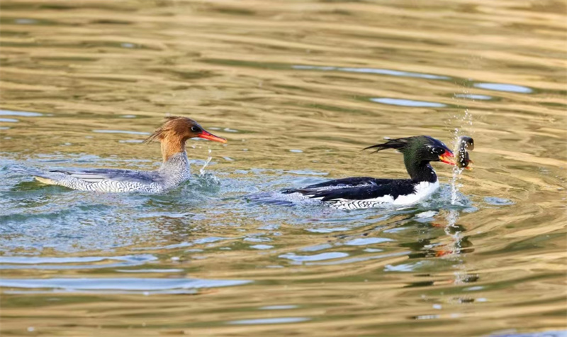 本網(wǎng)訊記者鐘軍 通訊員劉定富 黃俊報(bào)道:大暑清晨,早起的市民迎著日出前的輕風(fēng),在漢江右岸萬(wàn)洋洲濕地公園大堤上晨練。抬眼望去,薄霧輕籠漢江水面,一群白鷺在空中掠水而過(guò),遠(yuǎn)處萬(wàn)洋洲濕地公園淺灘里,中華秋沙鴨、黑鸛、青頭潛鴨正悠閑嬉戲覓食;水面上黃尾鲴、銀鲴往來(lái)穿梭,珍稀的馬口魚、間下鱵也不時(shí)躍出水面。這幅生機(jī)盎然的畫卷,是宜城市十年禁漁工作交出的生態(tài)答卷。