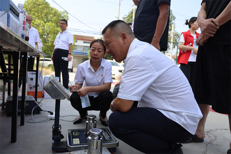 與此同時(shí),聯(lián)合檢查組還對(duì)南營(yíng)街道超市、紅薯收購(gòu)點(diǎn)、豬肉攤等場(chǎng)所開(kāi)展計(jì)量專(zhuān)項(xiàng)檢查。技術(shù)人員使用標(biāo)準(zhǔn)砝碼逐臺(tái)檢定商用電子秤,并對(duì)水果等農(nóng)產(chǎn)品進(jìn)行農(nóng)藥殘留檢測(cè),嚴(yán)把質(zhì)量安全關(guān)。
