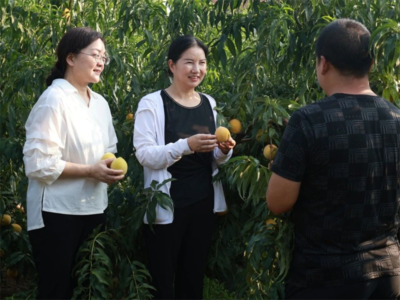 當(dāng)天上午,代表們來到流水鎮(zhèn)劉臺村種植基地,實(shí)地察看桃樹生長、掛果情況,細(xì)致檢視果實(shí)品質(zhì)、色澤與大小,并圍繞栽培技術(shù)、病蟲害防治、水肥管理等關(guān)鍵環(huán)節(jié)展開交流。果農(nóng)積極參與,與組長方雪梅深入分享種植經(jīng)驗(yàn),共同探索優(yōu)化方案;代表們結(jié)合專業(yè)知識,針對發(fā)現(xiàn)的問題提出切實(shí)可行的改進(jìn)建議,現(xiàn)場氛圍活躍務(wù)實(shí)。