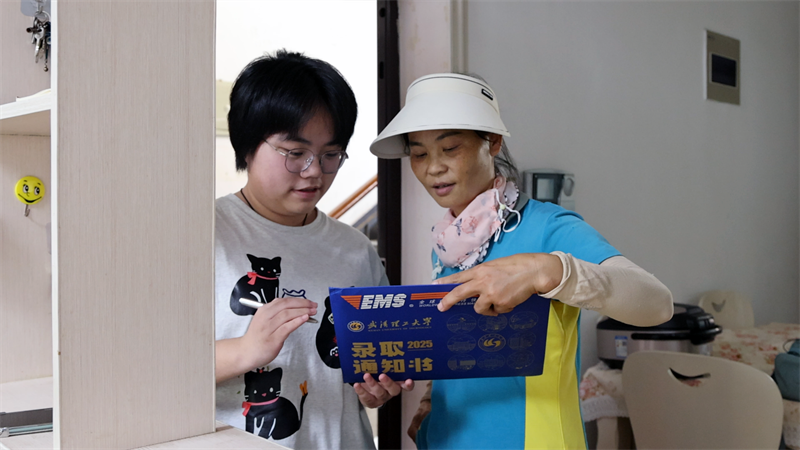 本網(wǎng)訊記者劉毅報道:"肖鑫榮同學(xué),恭喜你!這是你的武漢理工大學(xué)錄取通知書。"近日,中國郵政宜城市分公司投遞員來到考生肖鑫榮家中,將這份承載著夢想的快遞鄭重交到她手中。