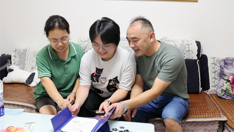 “孩子從小就非常自律,作為家長,我們始終相信只要盡力就好。今天她考上理想大學(xué),我們?yōu)樗械津湴。”肖鑫榮的父親肖軍士表示,“希望她在大學(xué)里繼續(xù)保持勤奮好學(xué)的精神,將來成為對國家有用的人才。”