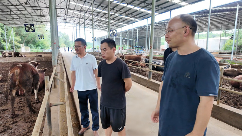 在劉猴鎮(zhèn)一處養(yǎng)牛場,工作人員對牛場衛(wèi)生狀況、通風設施、飼料儲存區(qū)等進行檢查,并詳細了解牛場的免疫程序、疫苗使用、消毒措施等情況。