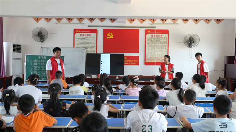 王集鎮(zhèn)襄江村聚焦留守兒童假期看護難題,在黨群服務中心二樓開辦公益托管班,招募志愿者提供陪護、課程輔導和興趣活動,讓30多個孩子有了“快樂驛站”,家長放心打工、農(nóng)忙。