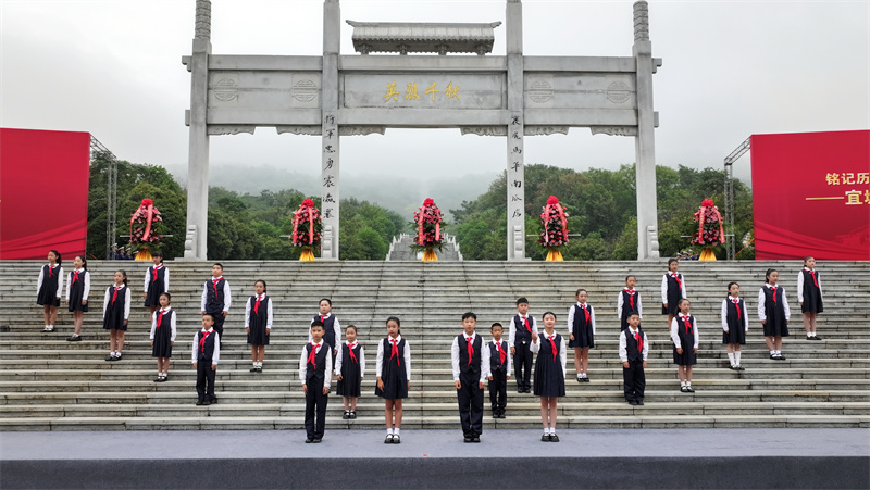 “小小講解員”聲情并茂誦讀《英雄》故事,孩子們用純凈而堅定的聲音,再現(xiàn)了抗戰(zhàn)英雄的革命勇氣與堅毅意志,令人動容。隨后,全體人員在少先隊員帶領(lǐng)下,集體重溫抗戰(zhàn)家書。字字鏗鏘、情深意重的文字,仿佛帶人們回到那個戰(zhàn)火紛飛卻信念如鐵的年代,不少觀眾眼含熱淚。