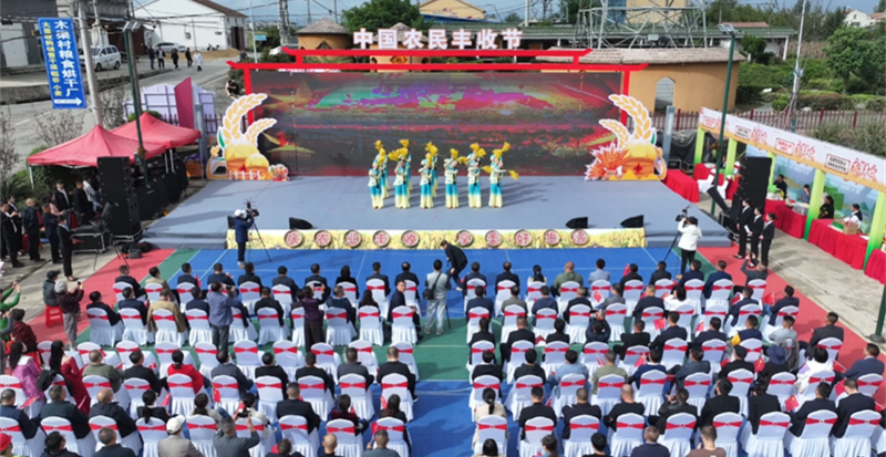 豐收節(jié)現(xiàn)場,舞蹈《踏歌起舞慶豐收》、豐收歌曲《在希望的田野上》《楚都美食香飄天下》、連響棍表演《打連響慶豐收》等節(jié)目輪番登場,謳歌時(shí)代發(fā)展,共享豐收喜悅。