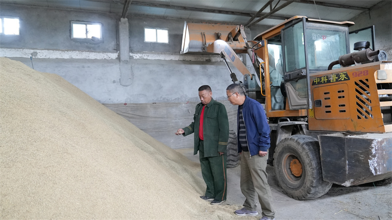 助農(nóng)服務(wù)隊(duì)在八家洲農(nóng)機(jī)專(zhuān)業(yè)合作社檢查烘干糧食