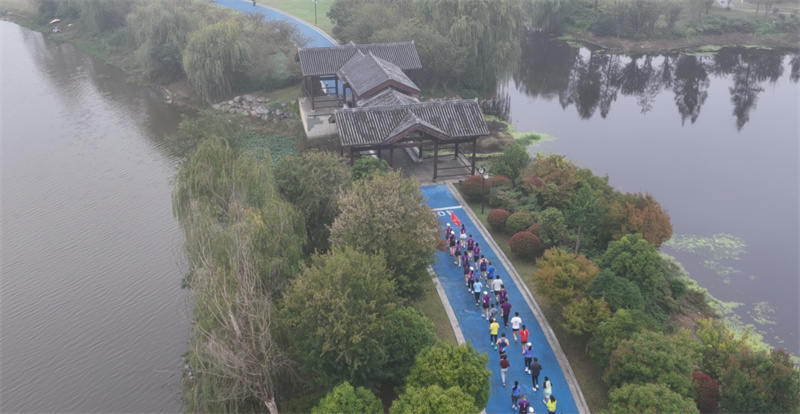 本次活動的路線為楚都公園(噴泉廣場)——內(nèi)環(huán)智能跑道起點——內(nèi)環(huán)智能跑道終點——楚都公園(噴泉廣場)。隨著發(fā)令槍響,選手們?nèi)珉x弦之箭般沖出起跑線,沿著既定路線開啟了活力滿滿的環(huán)湖跑。一路上,大家呼吸著清新的空氣,欣賞著楚都公園的美麗景色,享受著跑步帶來的快樂。
