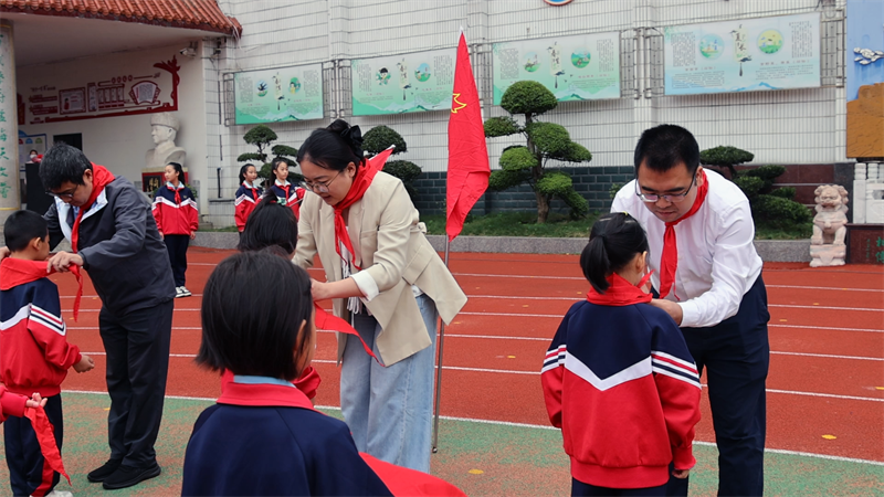 新隊員代表分享加入少先隊的經(jīng)歷和收獲,表示將牢記紅領(lǐng)巾的責任,肩負起時代賦予的使命,傳承紅色基因,用實際行動爭做新時代好少年。