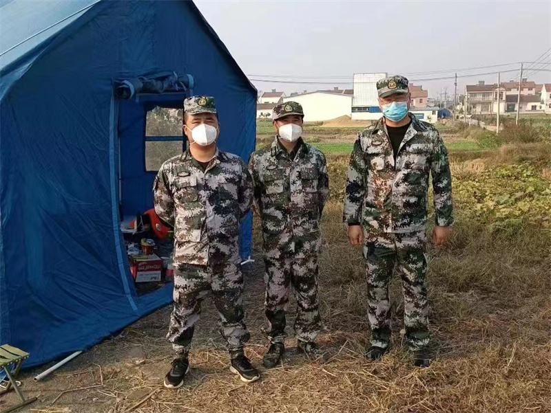 10月30日晚,正在黃金村組織村民開展全民核酸檢測的張金顯,突然接到鎮(zhèn)人武部部長張仁華的緊急電話,“接上級通知,鄭集鎮(zhèn)疫情嚴重,需要我們鎮(zhèn)民兵組織突擊隊火速支援,你愿意參加嗎?”“作為黨員和退役軍人,我堅決服從組織安排,保證完成任務!”“那就任命你為突擊隊隊長,這次的任務是帶領劉猴突擊隊的20名隊員,到鄭集鎮(zhèn)的各防控執(zhí)勤點參加防控值守!”
