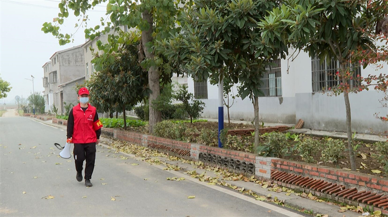 11月4日,記者在木渠村3組看到,志愿者石洋正拎著大喇叭行走在村路上,提醒村民們做好個(gè)人防護(hù),出門排隊(duì)做核酸。在村民核酸檢測(cè)完之后,石洋又來(lái)到了木渠村2組,參與疫情防控值守工作。