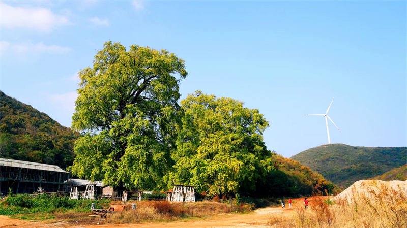 當?shù)厝烁嬖V記者,因為今年夏季高溫干旱,秋冬少雨,銀杏樹葉變黃速度比往年晚了近一個月。