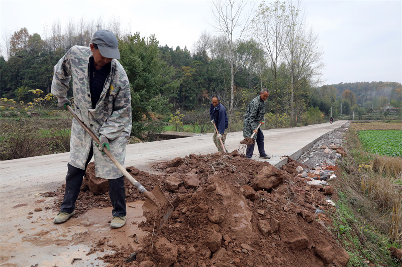 這兩天,家住陳灣村五組的鄭大榮一忙完家里農(nóng)活,就喊上隔壁鄰居,到這條路上幫忙。“有時間就來活水泥、填下路肩,干些力所能及的活,為我們自己修的路,苦點累點也是應(yīng)該的!