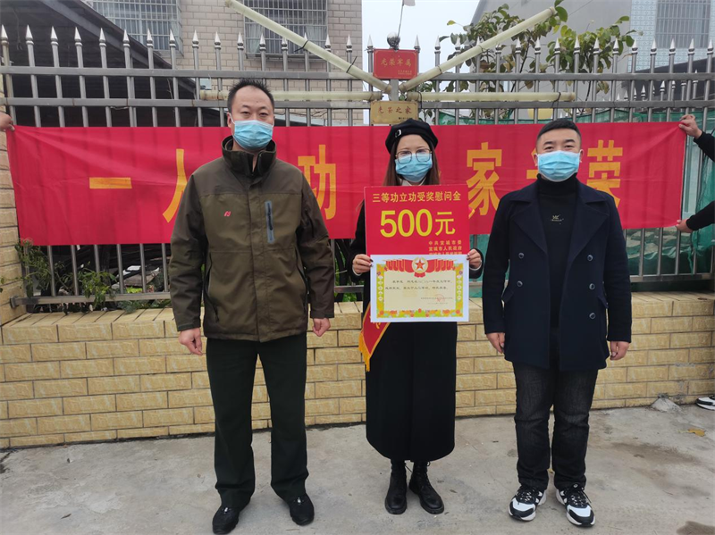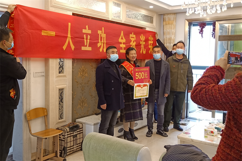 本網(wǎng)訊通訊員邱肖肖 李一鑫報道:11月25日上午,龍頭辦事處退役軍人事務(wù)站聯(lián)合市退役軍人事務(wù)局為現(xiàn)役軍人高振飛和袁爭光送上立功受獎喜報和獎勵金。