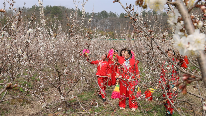 “姐妹們聽說櫻桃谷的花開了,便來這里賞花,大家打卡、跳舞、拍視頻,玩得很開心。過一段時間我們還會過來吃櫻桃,觀賞桃花、李花!庇慰完惣蚁阏f。
