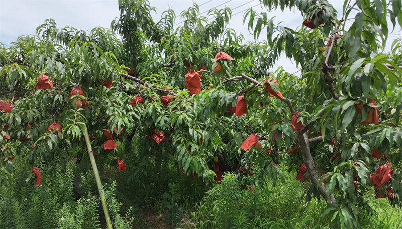 金山村的黃桃產(chǎn)業(yè)崛起,離不開科技“護(hù)航”。2017年,金山村引進(jìn)老河口春雨合作社的黃桃新品種,2020年獲國家綠色認(rèn)證及“優(yōu)質(zhì)金桃獎”,當(dāng)?shù)卣幸暮本G鑫生態(tài)科技有限公司,將金山村的有機(jī)廢棄物轉(zhuǎn)化為液態(tài)肥,通過滴灌系統(tǒng)直接施入果園,不僅通過綠色環(huán)保方式提高了種桃效益,還能每年為村集體帶來25萬元的分紅。