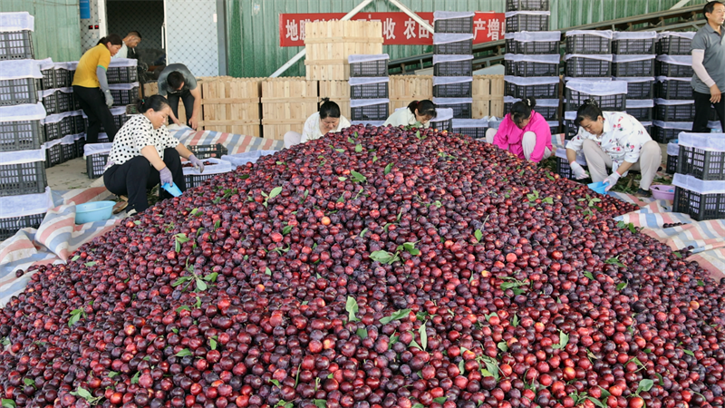 近日,在板橋店鎮(zhèn)王臺(tái)村一處李子交易市場(chǎng)內(nèi),工人們正忙著將成熟的李子進(jìn)行分裝、稱重、打包、裝車,現(xiàn)場(chǎng)一片繁忙景象。