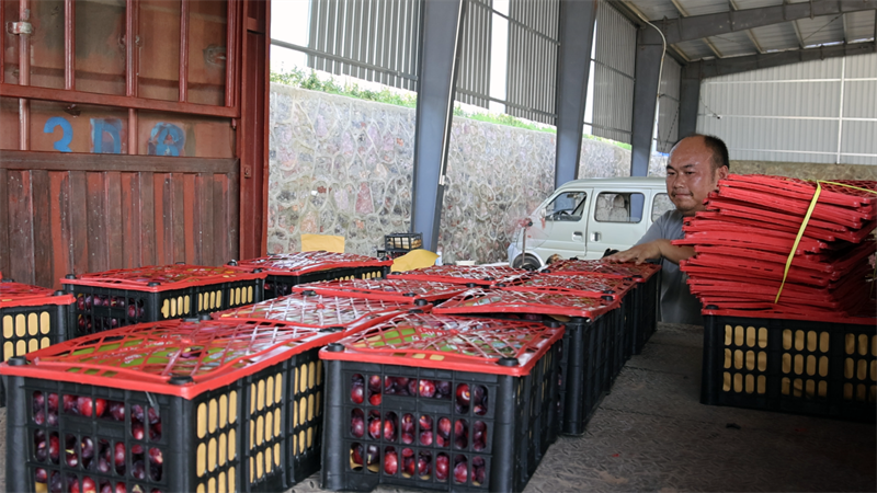“這里的李子又脆又甜,質(zhì)量杠杠的,很受市場(chǎng)歡迎。我們每天要發(fā)5、6車的貨,在這里還要再收購(gòu)近一周時(shí)間。”湖南省邵陽(yáng)市客商陳銘說(shuō)。